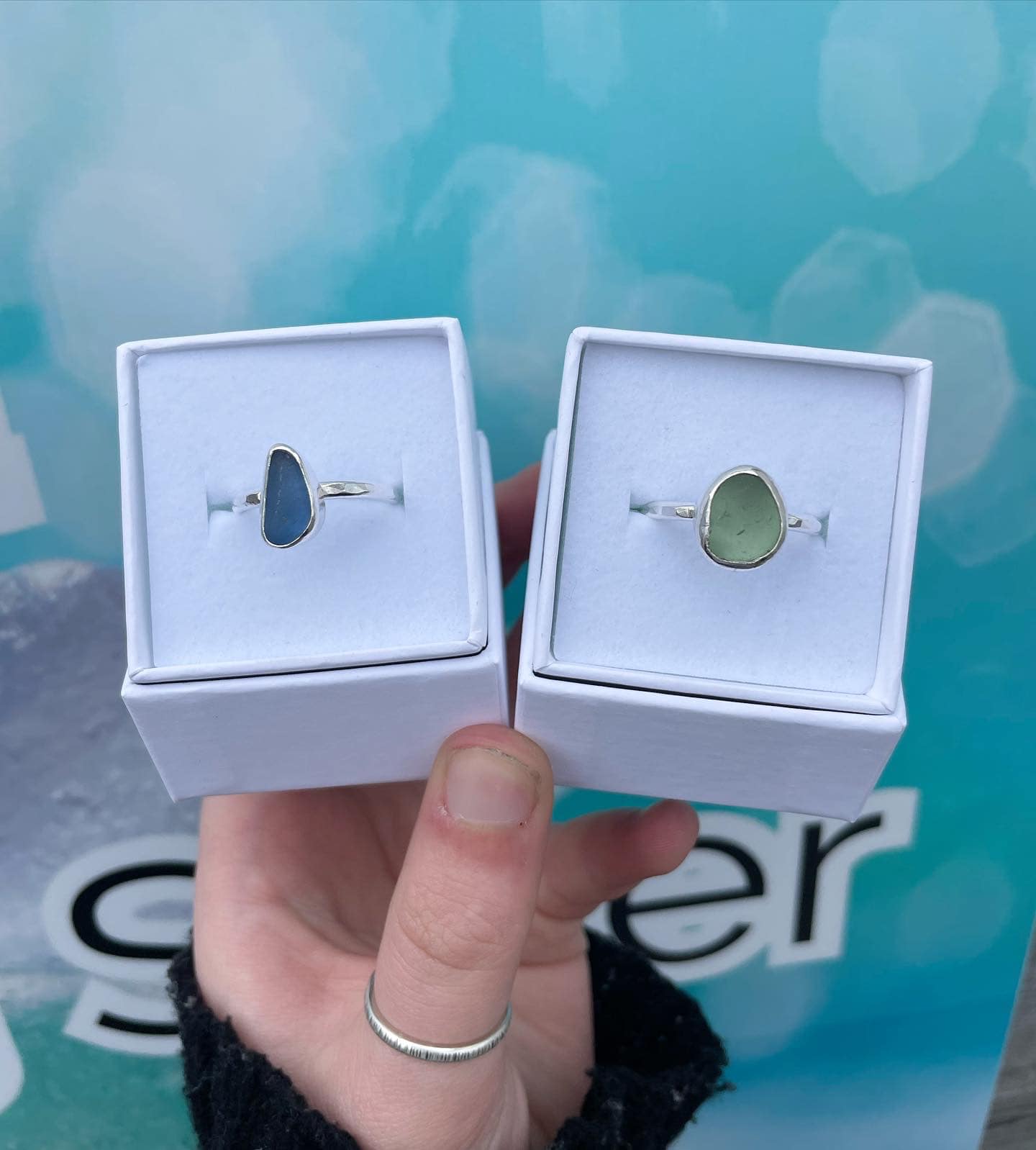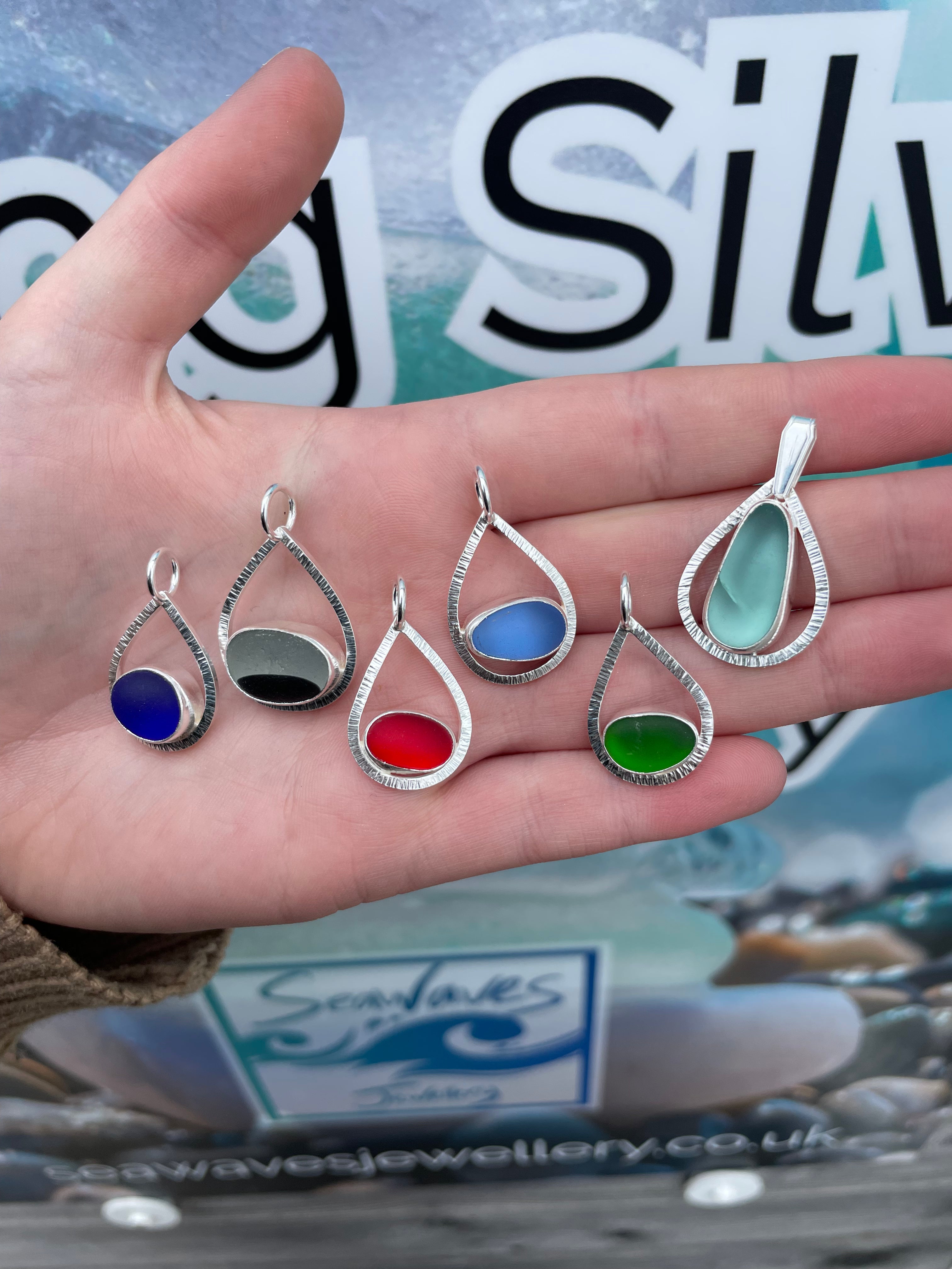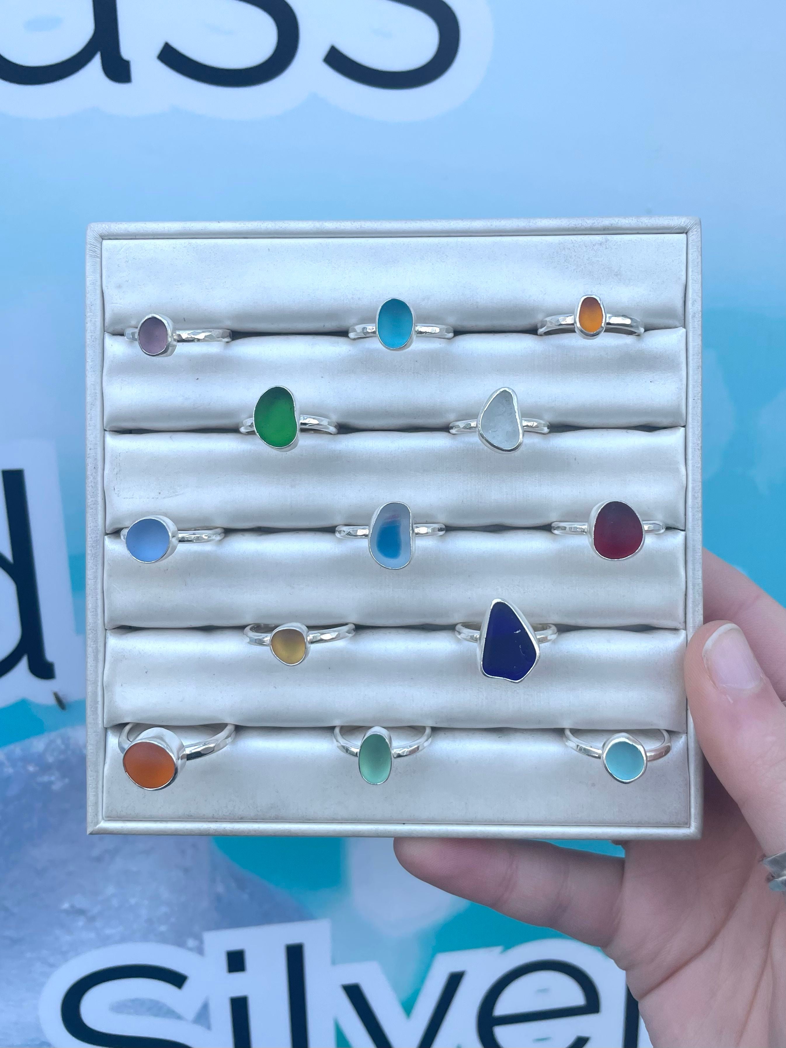 All of our commissioned pieces are made with 925 Sterling Silver and can use SeaGlass from your own personal collection, a piece from our collection or a semi precious stone.
