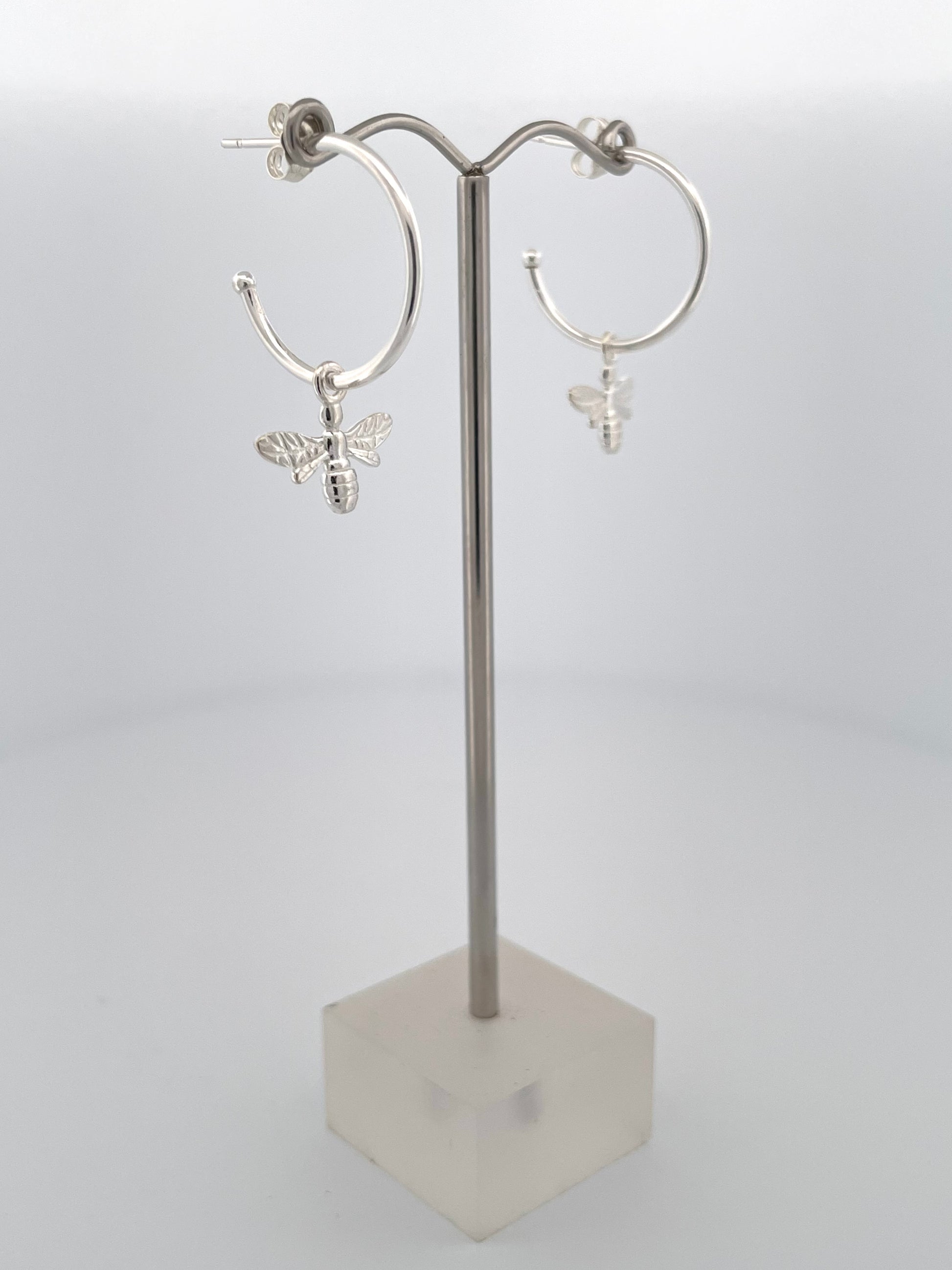 A Sterling Silver delicate Bee design set on a Diamond Curb chain giving a sparkly finish to your necklace and earrings